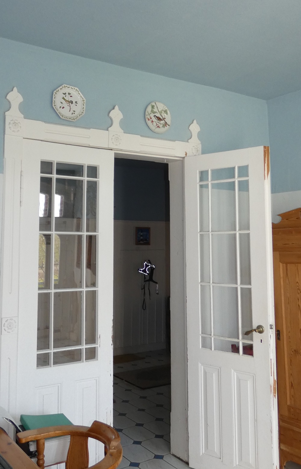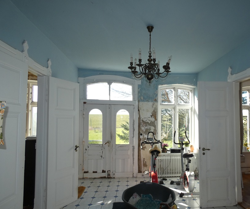 Sie parken auf den befestigten Stellplätzen und durch den Nutzflächenbereich des ehemaligen Stalles gelangen Sie in die grosszügige Diele des Wohnbereiches und erkennen schon durch die Deckenhöhe von ca. 3 m, daß beim Bau diesen massiven Objektes nicht gespart wurde.
