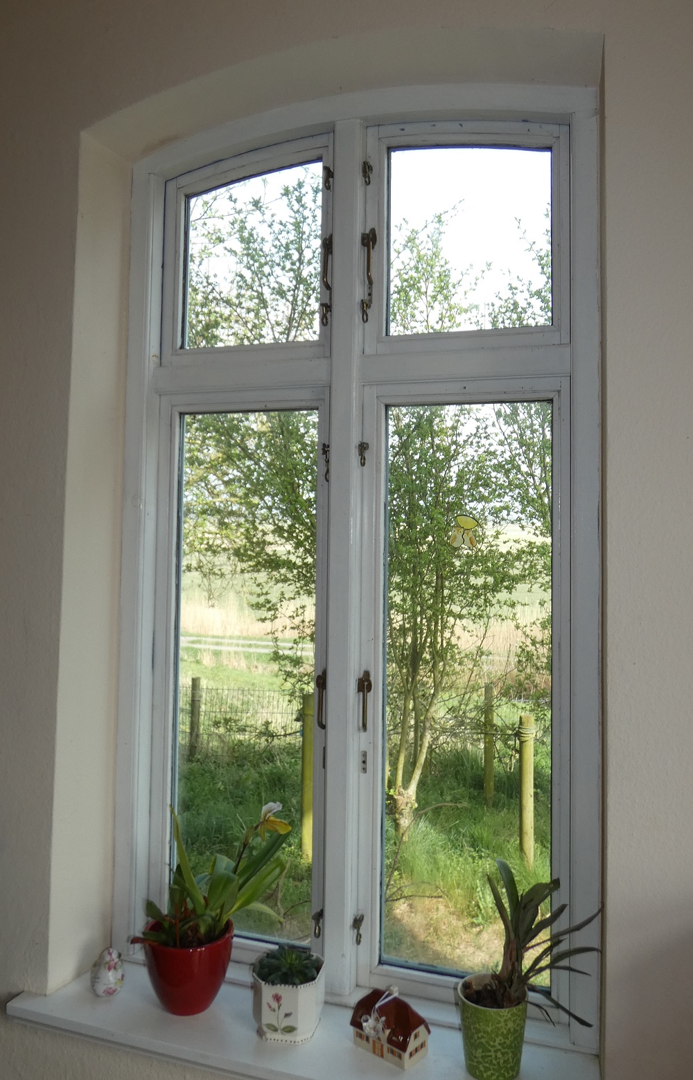 Im Erdgeschoß sind, zum Süden ausgerichtet, drei lichtdurchflutete Wohnräume. Einer davon mit integriertem Badezimmer. In den Neunzigern wurde in dieses Objekt viel Mühe und Kapital investiert und in Zusammenarbeit mit dem Denkmalschutz eine teilweise Sanierung und Wohnflächenerweiterung umgesetzt. Fortlaufend wurden Unterhaltungsmaßnahmen unternommen. Eine Bewohnbarkeit wurde so gesichert, jedoch würde eine weitere Sanierung diesem besonderen Gebäude gerecht werden.