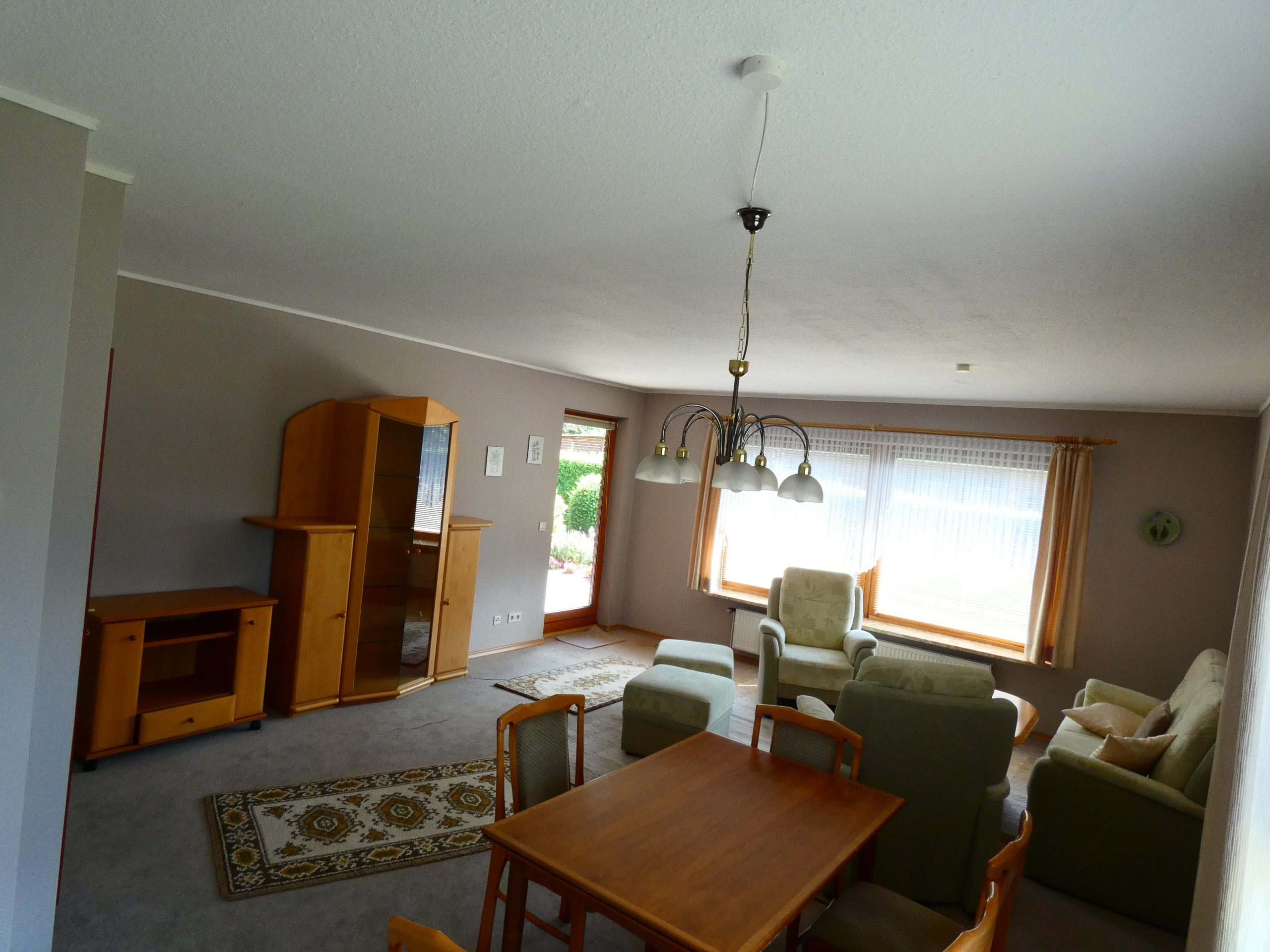 Im Wohnzimmer kann am vorhandenen Schornstein ein Kaminofen angeschlossen werden.